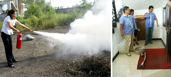 俗話說“行軍打仗,軍馬未動(dòng),糧草先行”,說的就是做好事先準(zhǔn)備工作的重要性。對于化工公司這樣可燃、易燃物多的場所而言,如何做好消防安全工作,提升火災(zāi)防范能力,及時(shí)發(fā)現(xiàn)、排除火災(zāi)隱患就顯得格外重要。2011年8月26日下午15時(shí),奧吉娜公司對全體員工進(jìn)行了一次消防安全技能專題演練。