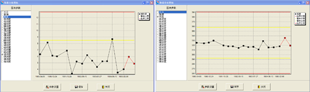 圖三:軟件的預(yù)警功能,不僅能給出當前測試結(jié)果所處范圍,同時能夠通過模糊計算理論,給出下次樣品的數(shù)據(jù)。